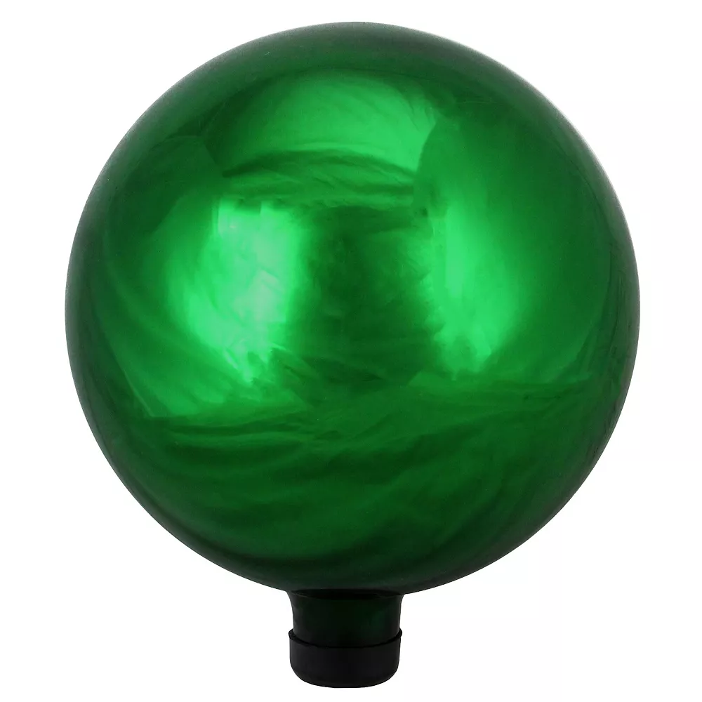 Natural beauty doesn’t have to stay indoors as this emerald green gazing ball demonstrates. This versatile piece is the perfect way to add style and charm to your home or garden. Pair with a stand or statue for a pop of color. Product Features: Shiny solid green mirror finished gazing ball. Stand not included. Recommended for indoor and outdoor use. Dimensions: 10 diameter. Material(s): glass