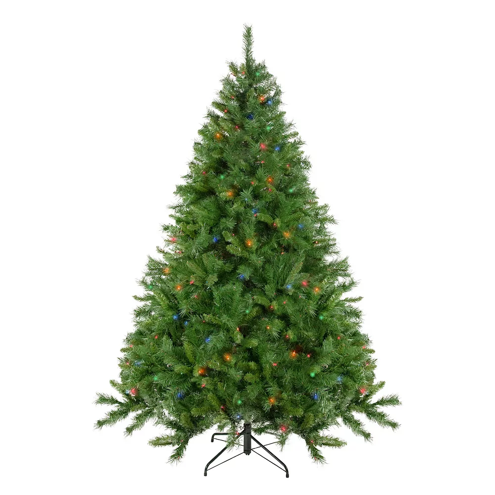 - Pre lit with 500 multi color incandescent mini lights; 1198 tapered PVC tips