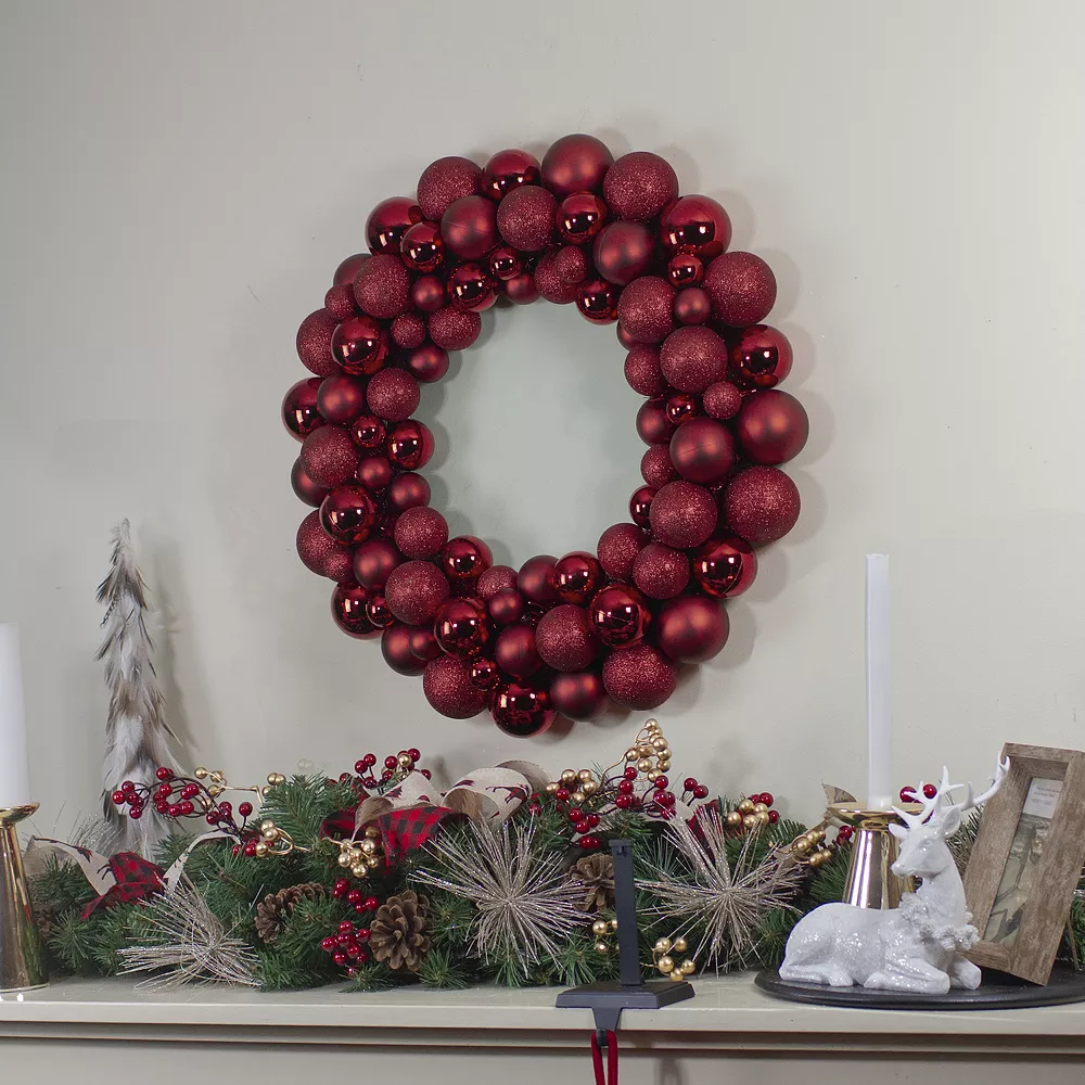 - Burgundy red shatterproof artificial Christmas ball wreath
