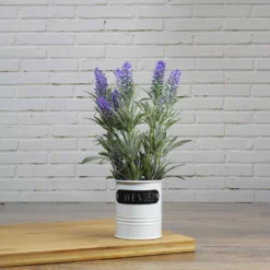 Christmas Central 11″ Artificial Lavender Arrangement In White Tin Can