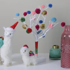 Christmas Central 15″ Multi-Color Christmas Pom Pom Twig Tree
