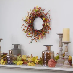 Christmas Central Berries And Apples Foliage Twig Artificial Thanksgiving Wreath – 18-Inch Unlit