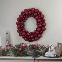 Christmas Central Burgundy 3-Finish Shatterproof Ball Christmas Wreath – 24″ Unlit