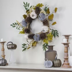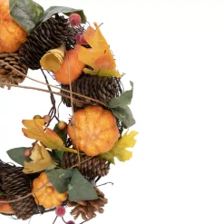 Christmas Central Pumpkin And Pinecone Autumn Harvest Wreath 13.5-Inch Unlit
