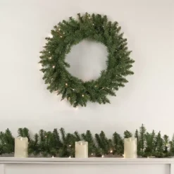 Christmas Central Pre-Lit Rockwood Pine Artificial Christmas Wreath 48-Inch Clear Lights