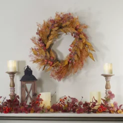 Christmas Central Yellow And Orange Berry And Leaves Fall Harvest Artificial Wreath – 24-Inch Unlit