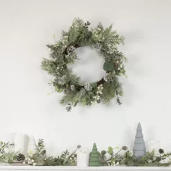 Christmas Central White Berry Eucalyptus And Pinecone Christmas Wreath 20-Inch Unlit